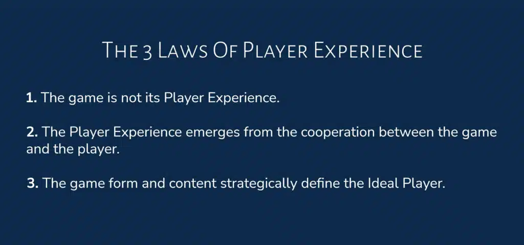 So, in this blog post, we’ll look at the Player Experience and its components and progressively build the 3 Laws of Player Experience.